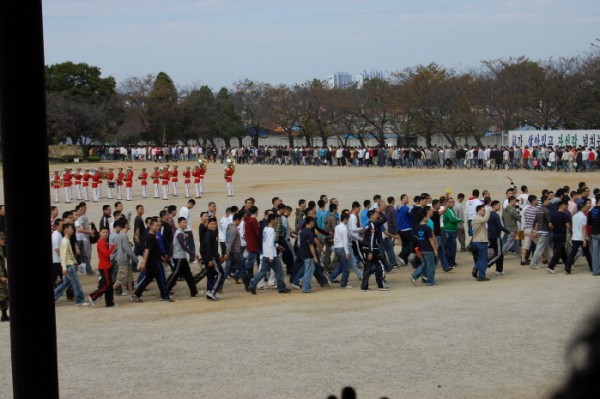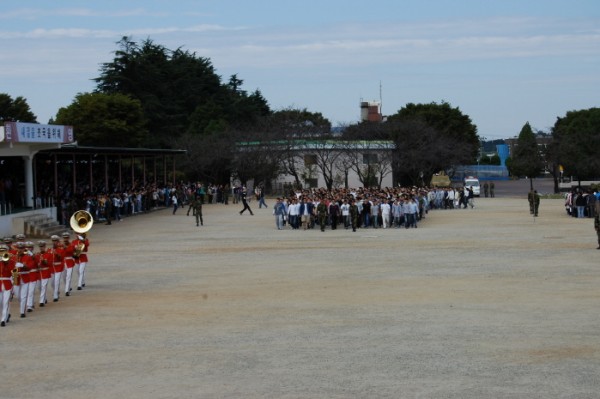 운동장을 돌며 손을 흔들어 작별인사를 하는 것으로 입소식이 끝났네요.