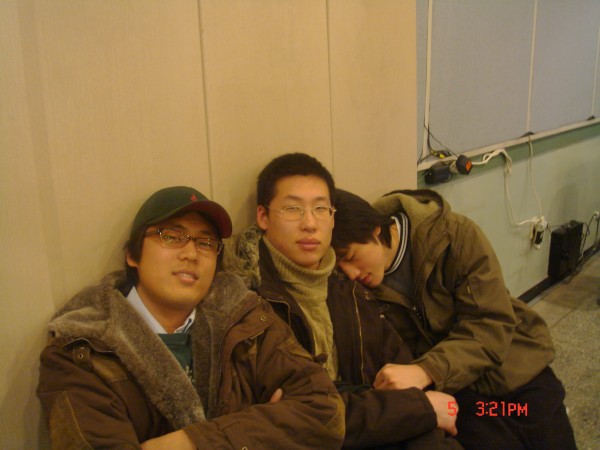 교회의 점심을 기다리는 노숙자 세명같다 ㅎㅎ